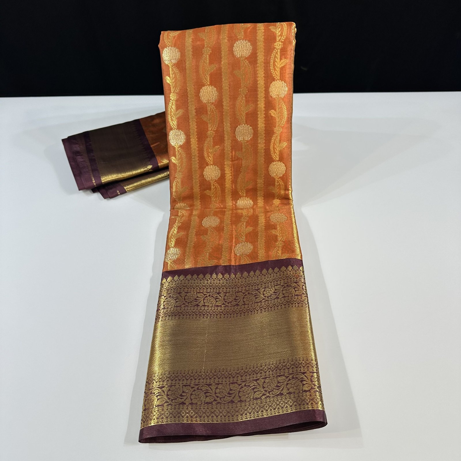 This premium soft Banarasi semi-silk brocade saree is a true expression of rich craftsmanship and timeless elegance. The body of the saree is adorned with an all-over Meenakari jaal pattern, intricately woven to create a vibrant yet refined surface that reflects classic Banarasi artistry.