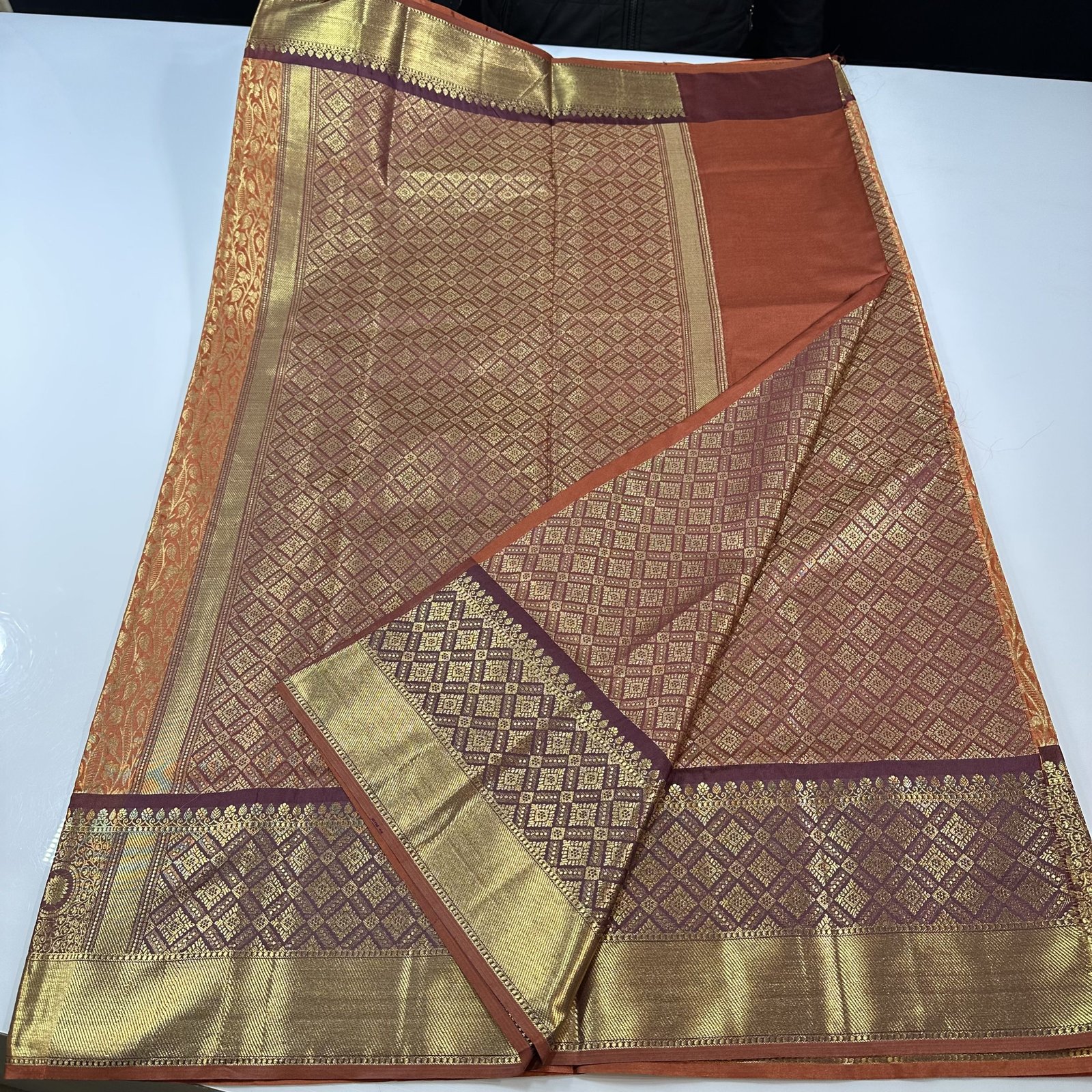 Gracefully blending tradition with thoughtful design innovation, this soft Banarasi semi-silk brocade saree is crafted for refined festive and ceremonial wear. The fabric carries a gentle sheen with a smooth, comfortable drape, making it ideal for long celebrations while maintaining the richness of Banarasi brocade artistry.