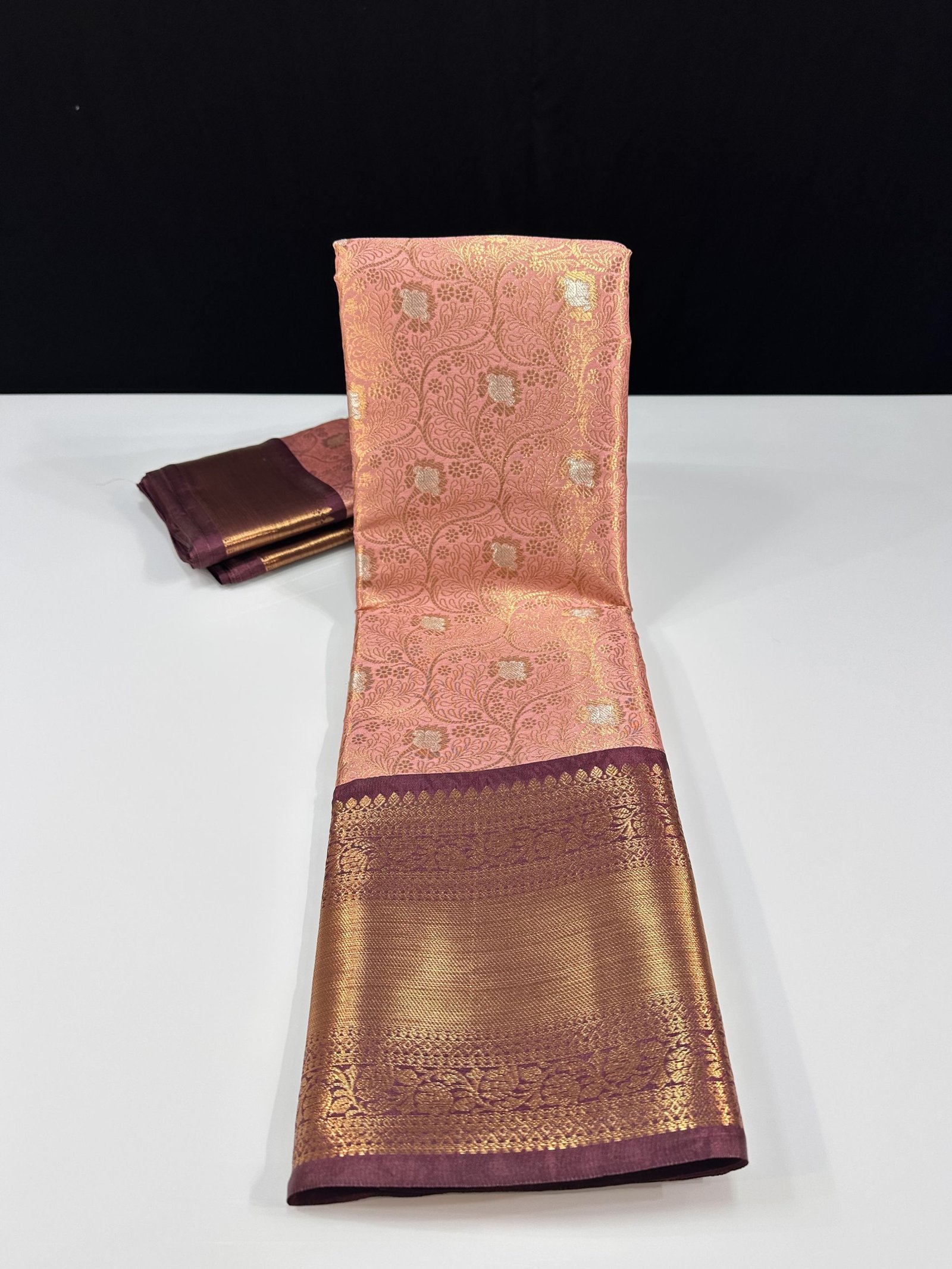 SOFT SEMI-KANCHI BROCADE SAREE WITH MEENAKARI JAAL PATTERN ALLOVER SAREE