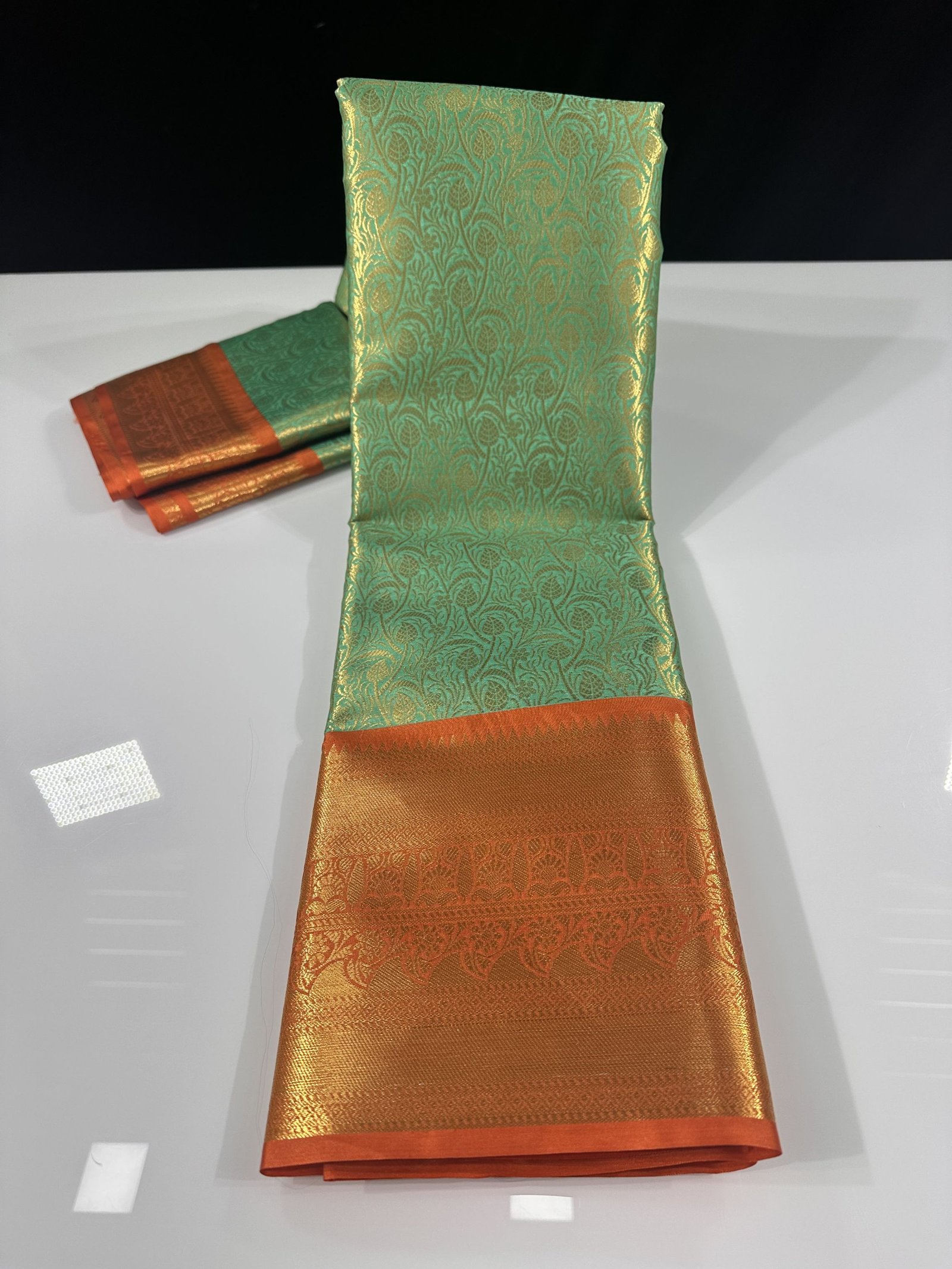 Soft semi-Kanchi brocade saree in premium jaal pattern with contrast weaving Kanchi border