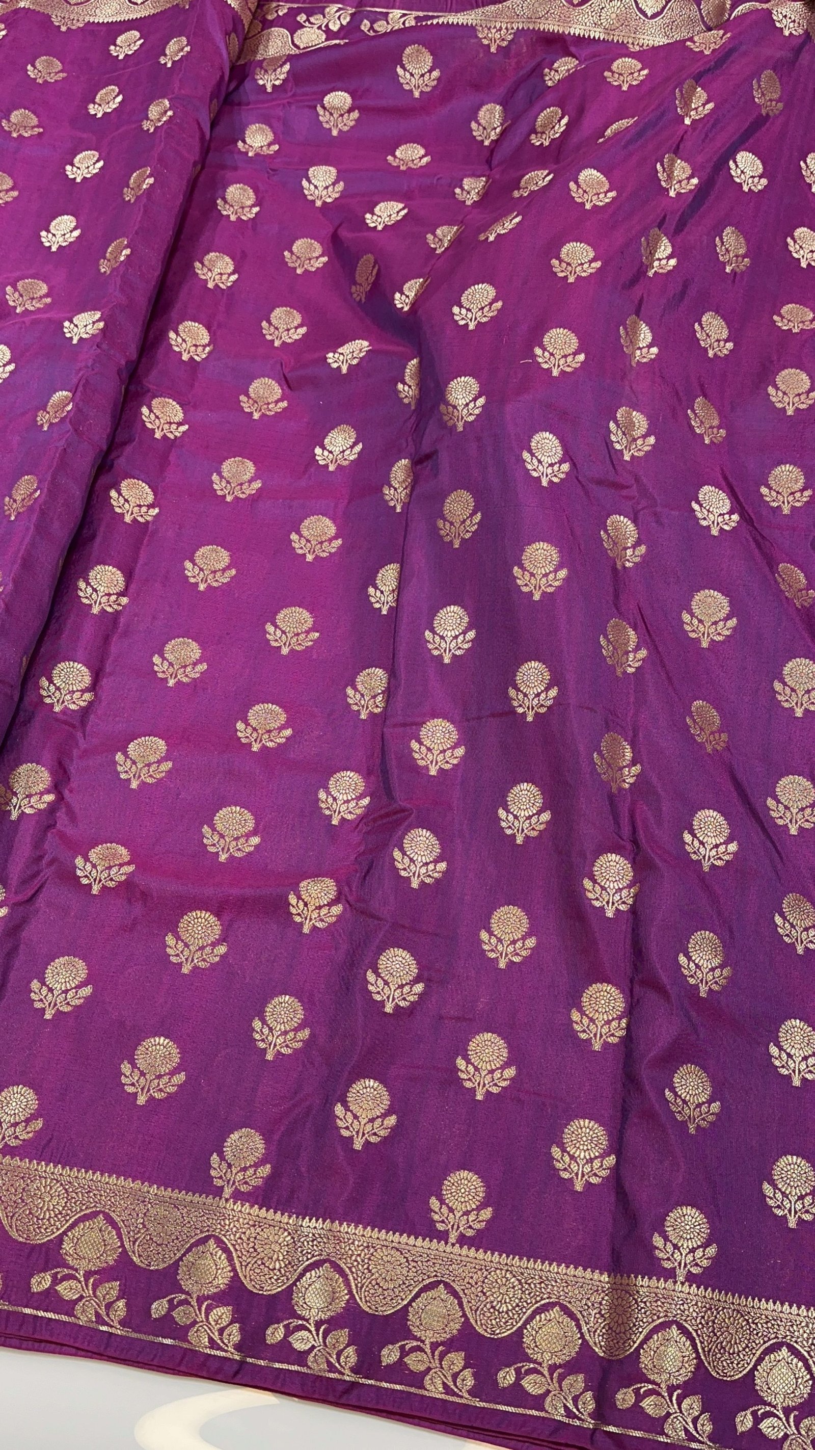 Its standout appeal lies in the rich shaded tone, reminiscent of authentic Banarasi silk color gradations, giving it a soft, luminous finish. Lightweight, smooth, and easy to drape, this saree is perfect for effortless festive styling with a touch of heritage sophistication.