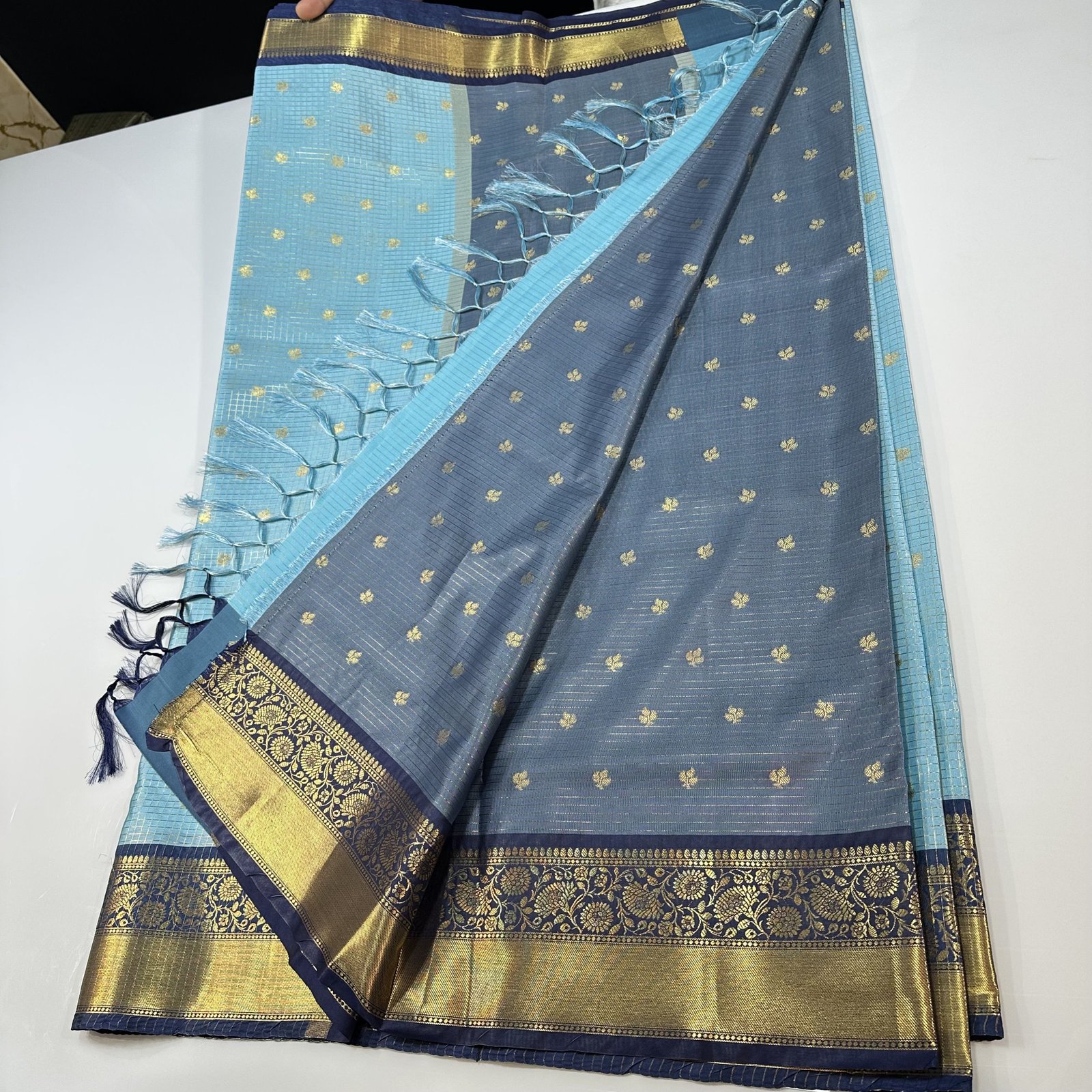 SOFT BANARASI SEMI-SILK SAREE IN VINTAGE INSPIRED CHECKS PATTERN WITH ZARI WEAVING BUTY ALLOVER SAREE