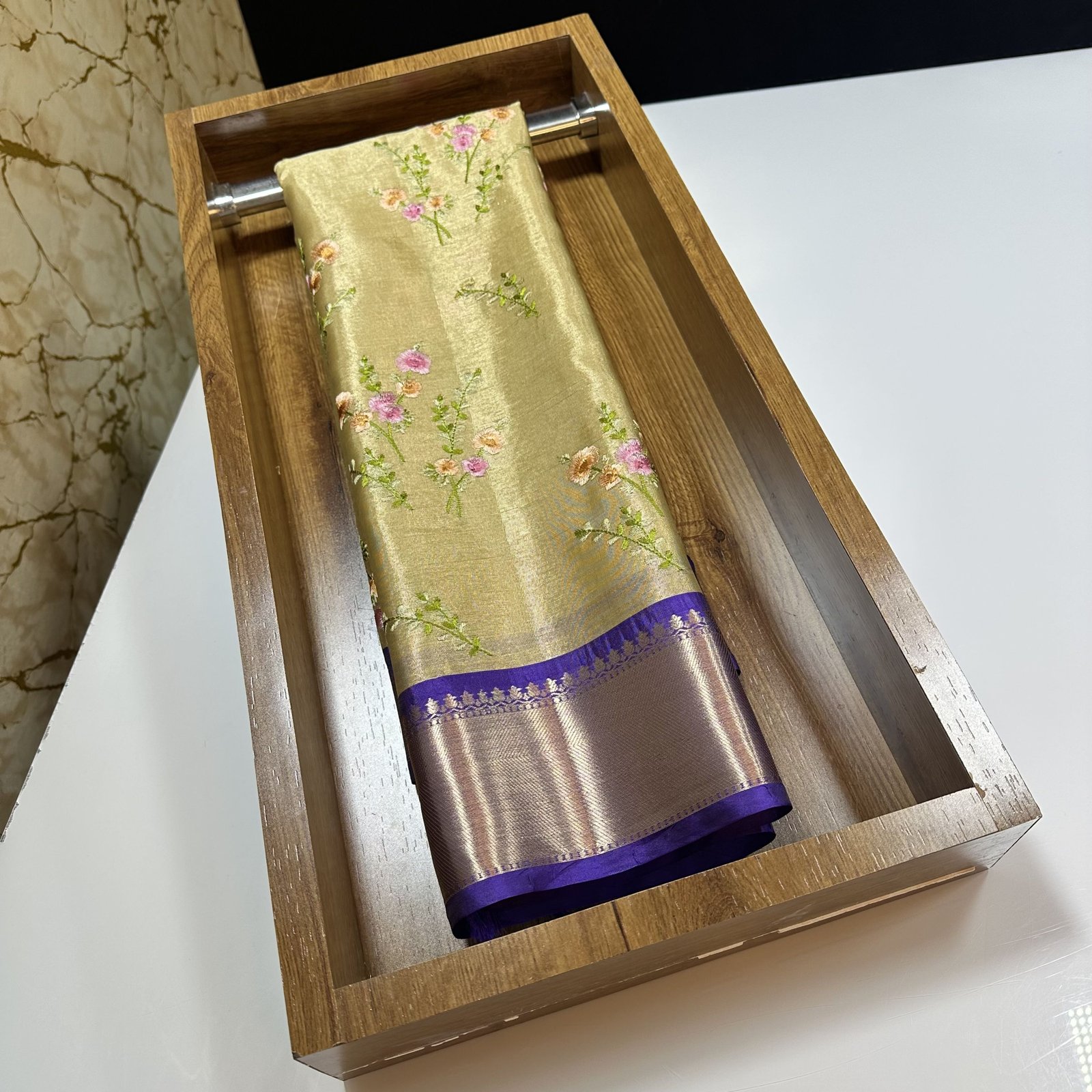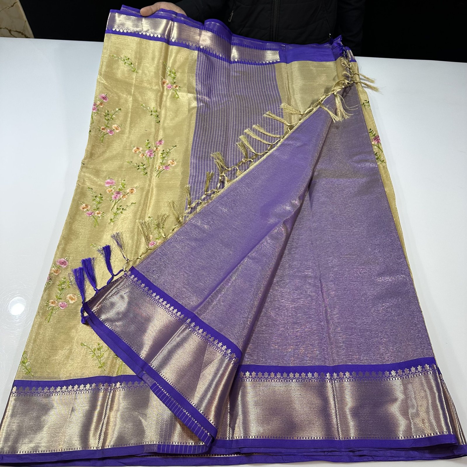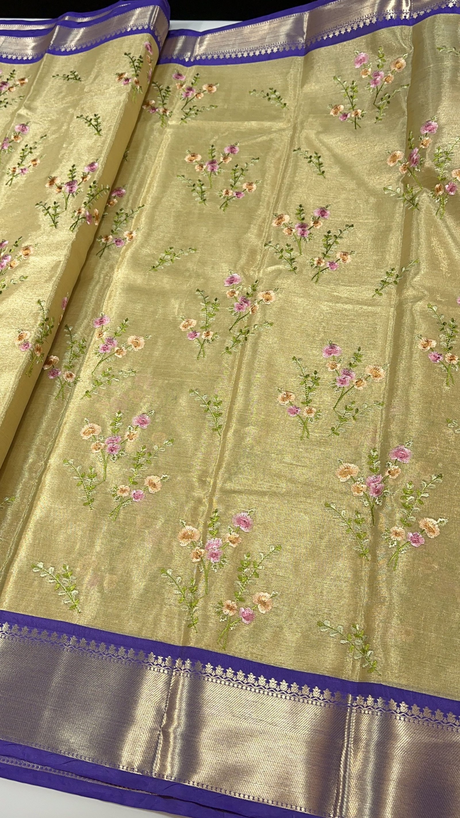 THE EXCLUSIVE SOFT BANARASI TISSUE SILK SAREE WITH MEENAKARI EMBROIDERY WORK BUTA ALLOVER SAREE