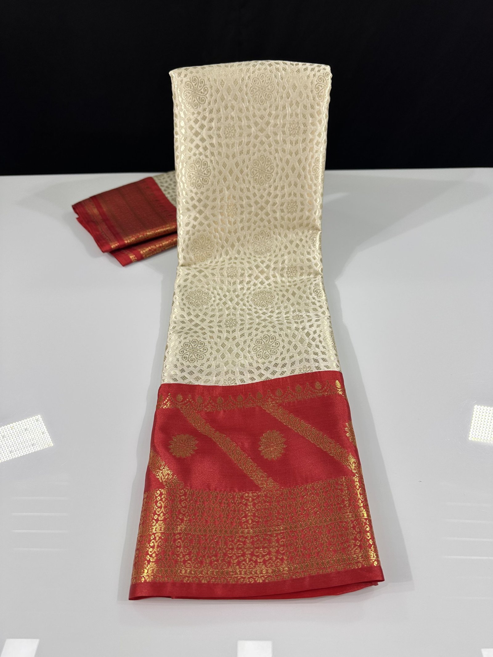 Bringing you all the premium soft semi-silk brocade saree in Kanchi inspired patterns